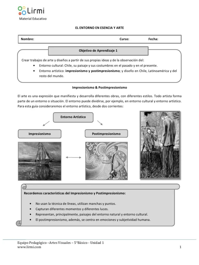 Unidad 1 uso de formas y color en el impresionismo guías... Guía de trabajo, artes visuales, 5° básico "el arte pop", segundo semestre 2020 nombre : Semana del 13 al 17 de julio. Rúbrica investigación música 5°básico_jc20.docx artes. Modulo 1 y 2 artes visuales 5°básico; Contenidos que corresponden a séptimo básico. Artes_guia nº1 de apreciación 5º.